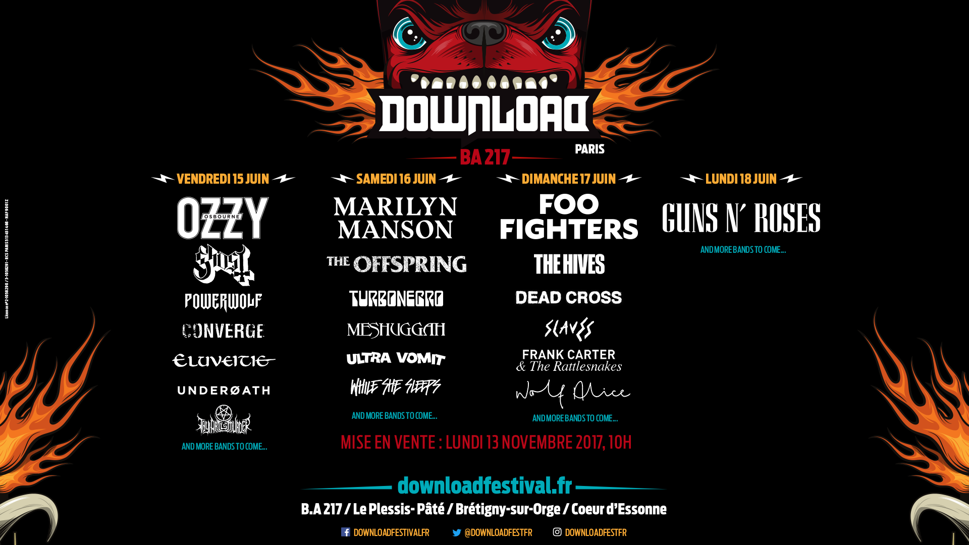 Zaenkrat so v UK (Donington Park) poleg Gunsov potrjeni še Ozzy Osbourne (Ozzy, a še boš brcal?) in Avenged Sevenfold, v Parizu pa še Marilyn Manson, Foo Fighters, Ghost, The Offspring in kopica drugih malih poslastic. Karte za Pariz bodo na voljo s 13. novembrom, britanska celotedenska izvedba pa je že na voljo za dobrih 200 funtov.